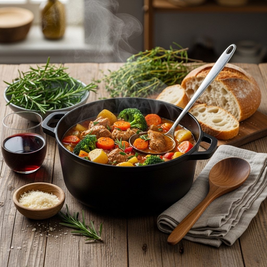 • **Dutch Oven / Deep Skillet:** Ideal for stovetop pasta dishes, braises, stews, and chilis. Great for searing first, then simmering.